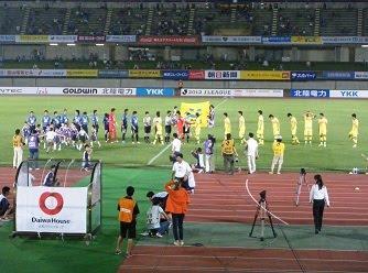 山形選手がボールを持つと、しっかり寄せていく。パスコースに足を伸ばす。せっかくパスカットしても、また拾われる・・・って場面も多々あったんですけど、最後のラインは皆ががっちり守って崩させなかった。点取られる気、あまりしなかった!