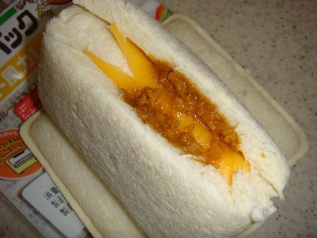 インド風カレーとスライスチーズをふんわりパンにサンドしました。