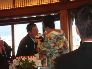 奥さんのキャラを見せ付けられた!?のがケーキ入刀後のファーストバイト。