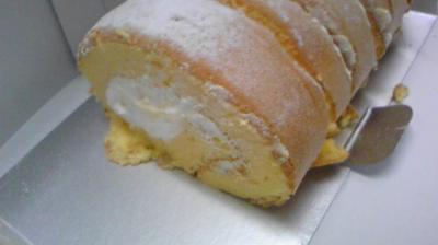 食後のおやつは生クリームの中にカスタードクリームが入ったロールケーキ[s467]