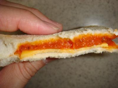 完熟トマトペーストのピザソースとスライスチーズをサンドしました。