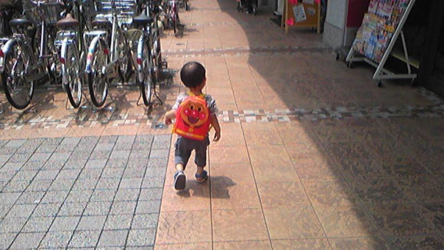 アンパンマンのリュック背負ってテクテク歩いてるんみると