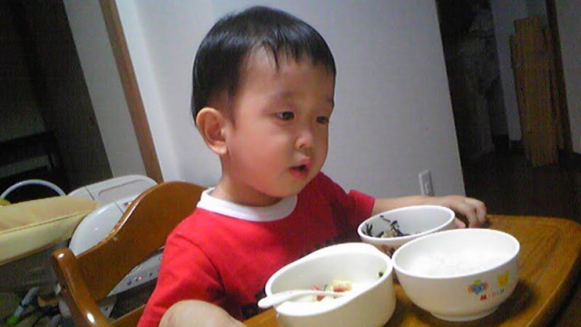 お昼寝を飛ばしたよーせー。夕飯のときに睡魔が襲って来たらしく…