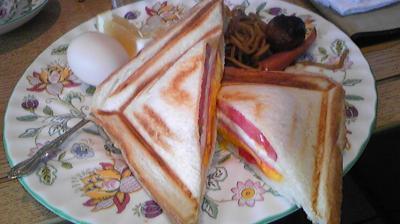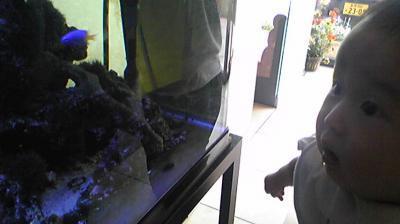 家の前の喫茶店でモーニング☆店の中にある水槽のおさかなさんに興味ありん♪