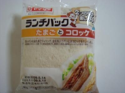 白いパンにはたまごフィリング、全粒粉入りパンにはコロッケをサンドしました。