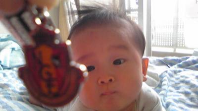 名古屋のストラップを必死に取ろうとするよーせー。