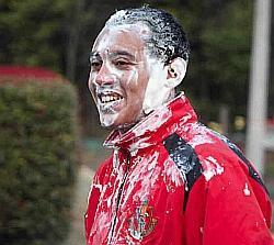 みんなからパイ投げによる祝福をうけたみたいですねぇ〜♪