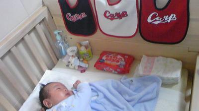 つい先日カープ部のタオル母がよーせーのために「よだれかけ」を買ってくれた♪