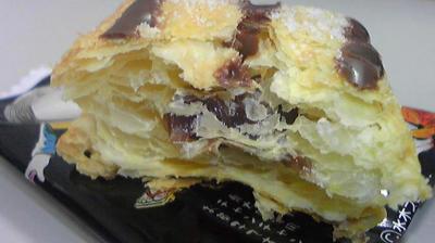 パイなんだけどね、中が何層かに分かれていてそこにチョコレートクリームが入ってる☆
