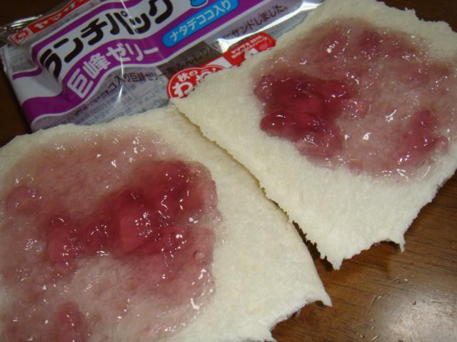 ナタデココ入り巨峰ゼリーをふんわりパンにサンドしました。