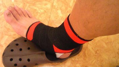 散々のアイシングとテーピング固定で疼痛は軽減してるから