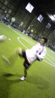 シュート練習でも本来軸足となる左足から強烈なシュートを