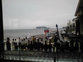 今江ノ島を眺めながら飯食ってる。物凄い絶景ポイントだけど天気は最悪(*_*)しかしこの店高い!カレー1杯1500円はボリ過ぎでしょ。