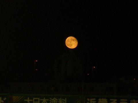 試合中に、大きな丸いお月様もレフトスタンドの後方から、浮かんできました。