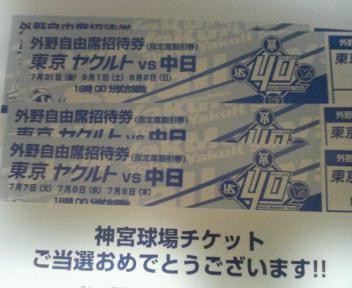 神宮球場の中日戦の招待券がこんなにきた。