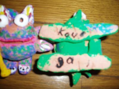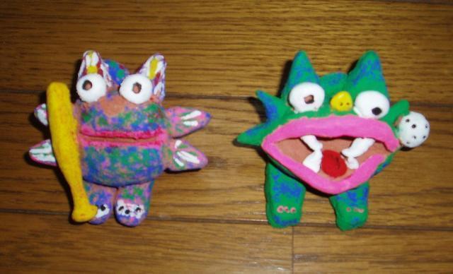 緑で口を開けたのがわたくしの作品で、青っぽいのが