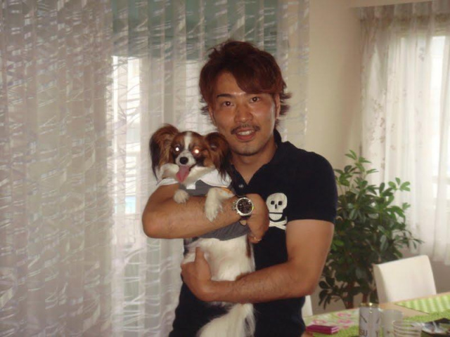 昼間から酒を頂いてなかなか俺になれてくれないワンちゃん、フタバちゃんと格闘。