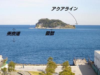その猿島の遙か後ろにアクアラインが写ってるんだけど見えるかなぁ。