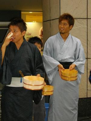 コミ、天野君、田中佑介君、マツさん、が浴衣を着て登場