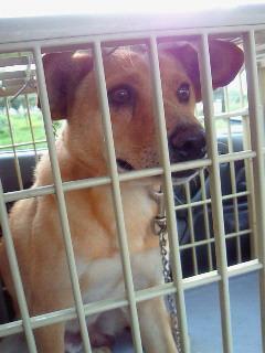 野良犬で先日役場から捕獲器で保護されて今日我が家にやってきました[d100]