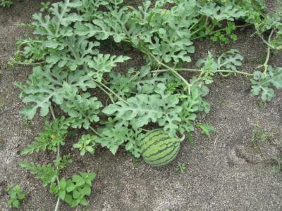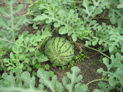 あまりたくさんスイカがあると味が落ちると聞いたので少し切ってしまいましたが今は3つなっています。