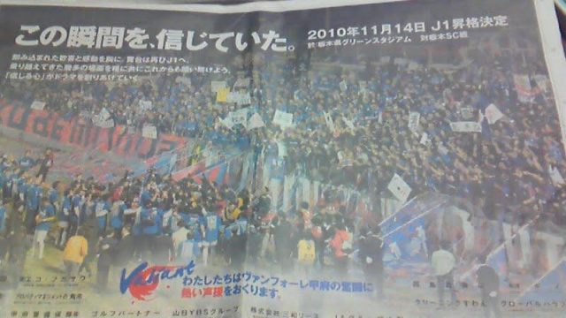 昇格後に一面を飾った地元新聞。