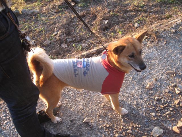 家の愛犬はヴァンフォーレカラー青赤の服着てます[d136]