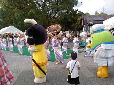 温泉町の城崎で鳥取のパフォーマンスを見る