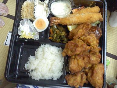 (しかし このお弁当 味はも一つでした こうやって皆さんから唐揚げを山の様に頂いて帰りましたが あたため直しても美味しくなかった [d138])