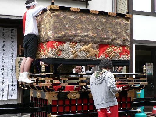 15日は この細い道を 祭りのだんじりが「競り」を見せます
