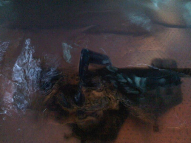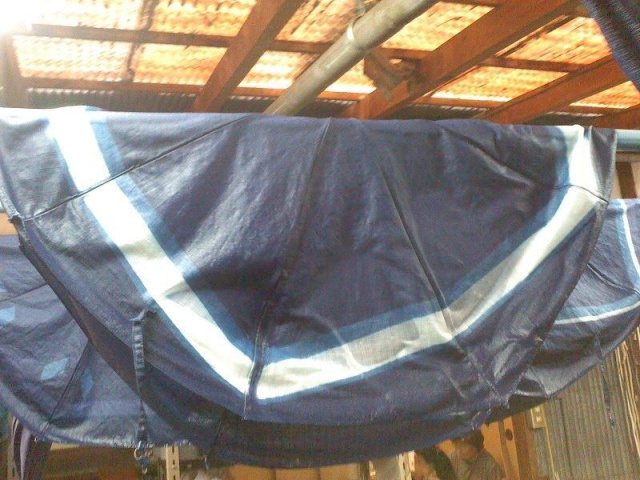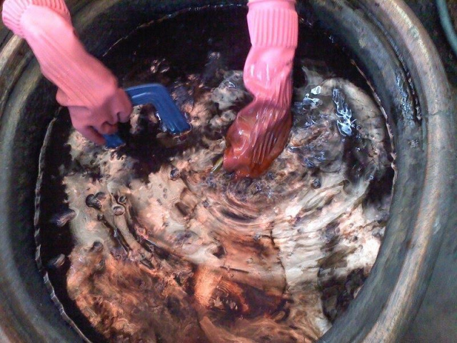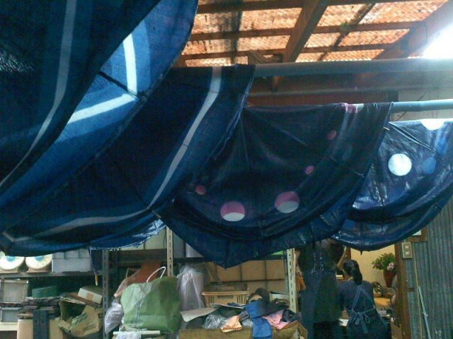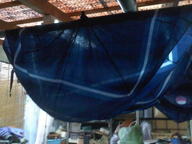 均等に染めるために 藍の中で布をくゆらせる、、、見えませんからね [d232]