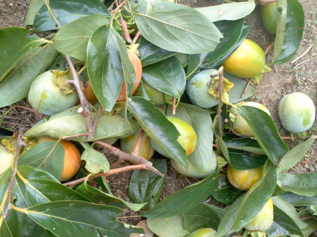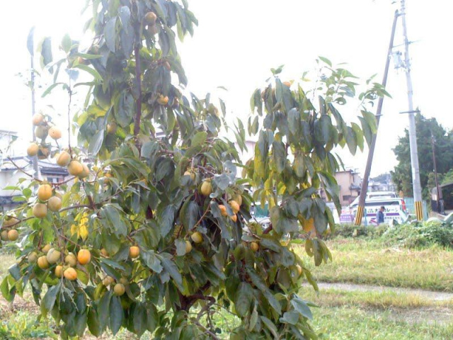 この小さな西条柿の木は 重そうに実を生らせていまして