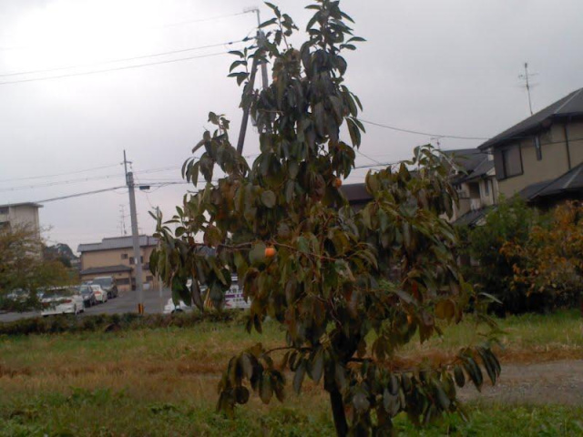 大きい方の木(あれは甘柿でしょう)も丸裸になっていました