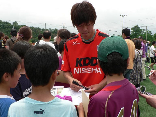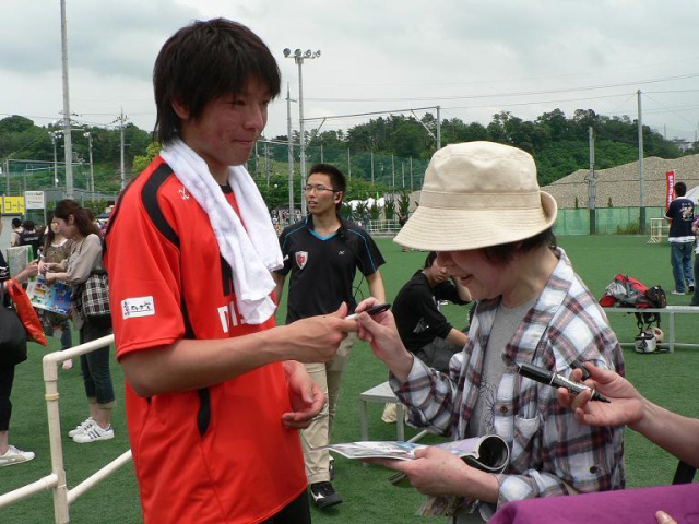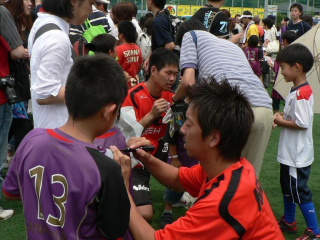 中山君は ちびっ子たちに サインする場所やサインの大きさについて いちいち丁寧に尋ねてからサインしていました