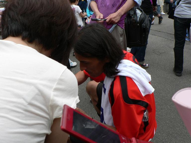 中谷選手もつかまって こちらはしゃがんでサイン中
