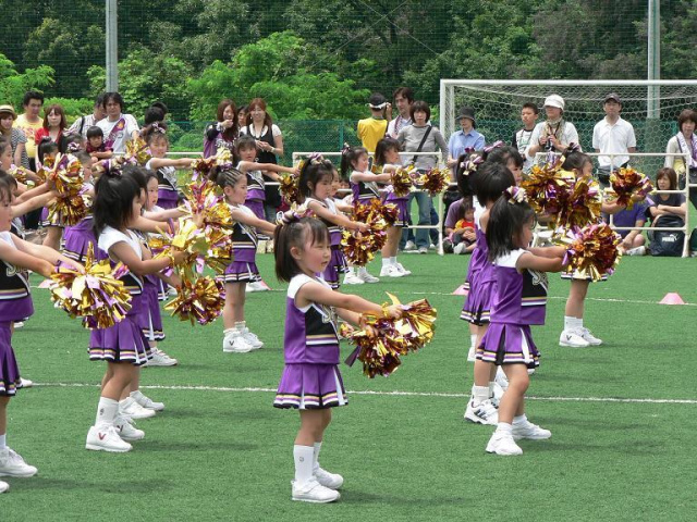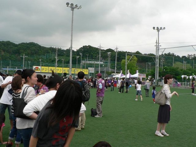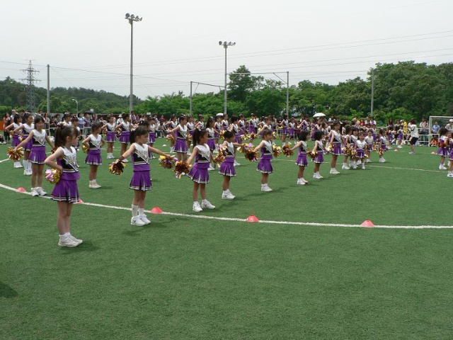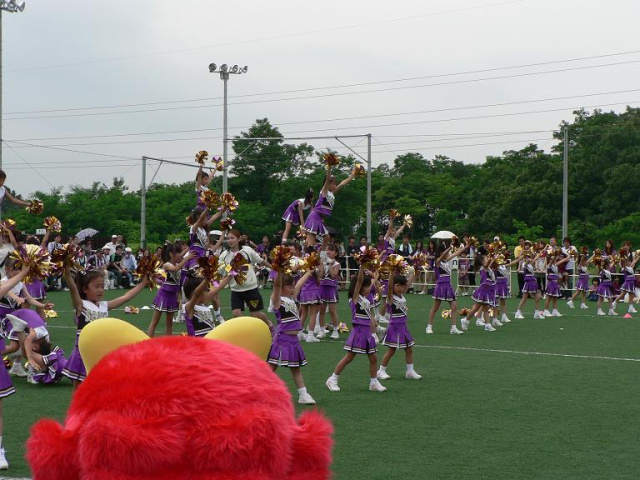 と 話しながらサンドウィッチやおにぎりを口に運んでいたら 応援団のグループが目の前を通過