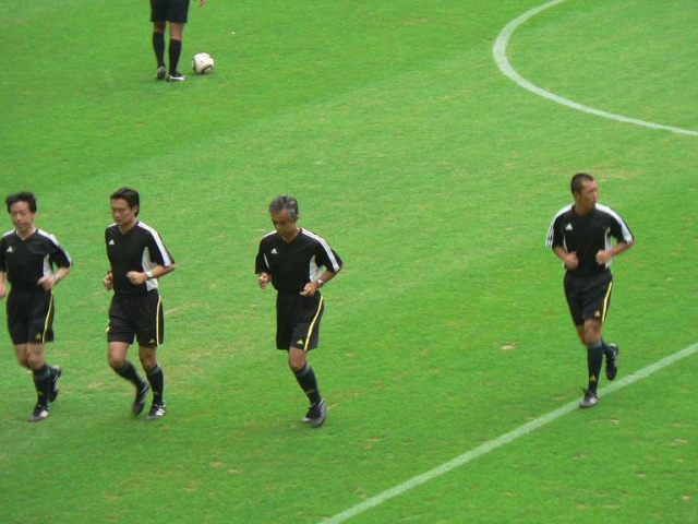 審判の皆さんもウォーミングアップ