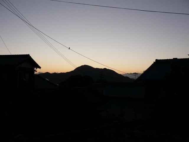 裏の観音山が未だ暗い
