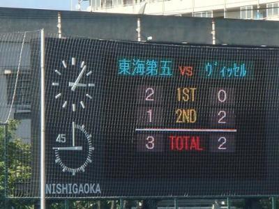 ロスタイム4分の表示を見て神戸イレブンも奮起するがスコアが動くことなく3対2で九州の雄東海第五が緒戦を飾った。