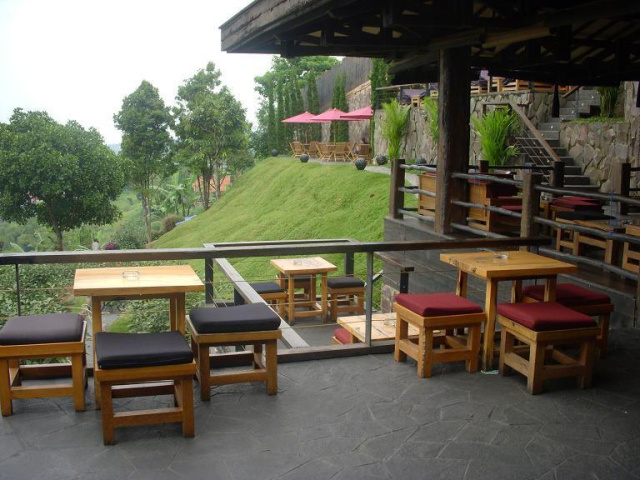 結構オシャレなカフェで、景色は緑しかない山みたいな自然な感じ。
