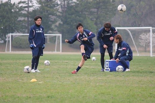 三人一組でクロスからのシュート練習(VSコーチ陣)