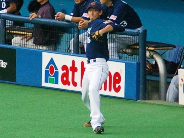 実は外野席って、投手よりも外野手(主に控え)の写真の方が撮りやすい。