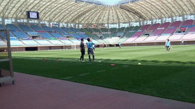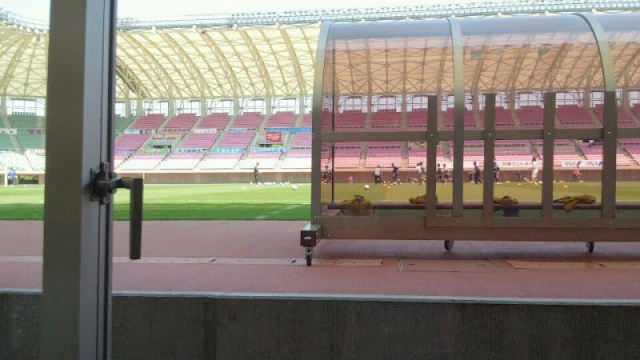 試合開始直前にいざユアスタのピッチへと!!!!!