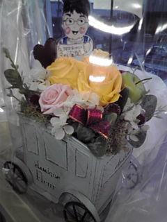 先日の送別会では生花をあげたので、今回は半永久的に枯れない花、「プリザーブドフラワー」