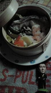 今夜は、蒸篭にキャベツを敷いて鱈、さやえんどう、しめじ、えのき、にんじん、じゃがいも