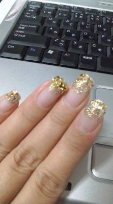 最近ゎ落ち着いたネイルにしてたんだけど天皇杯優勝に向けてゴールドのみのネイルにしました!!