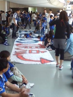 選手が練習に出てくるまで日陰に非難しました♪ ACL用の『アジアの頂点へ↑』って書いてある横断幕にメッセージ書きました♪