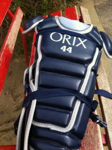オリックスの鈴木選手からいただきましたキャッチャー防具を今日、初めて使います。