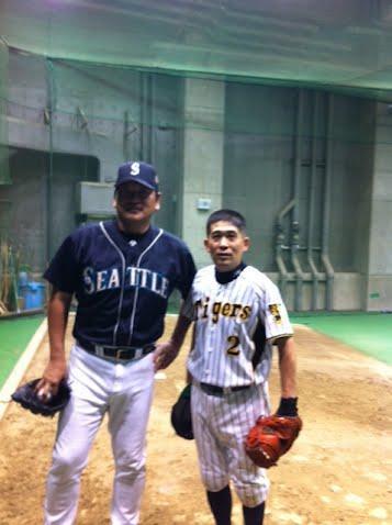 東京ドームのブルペンにて!マリナーズの時にこんなバッテリー組めたらどうだろ?