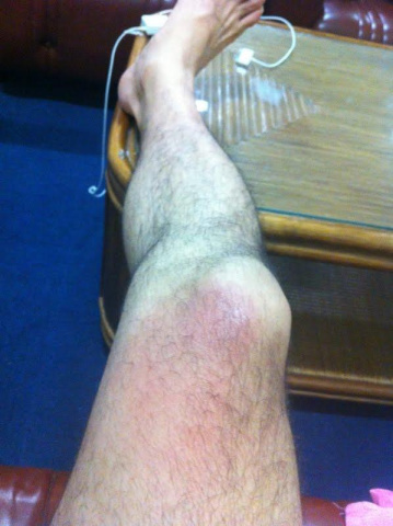 バッティングピッチャーでピッチャー返しが膝に!硬球だから尚更痛い!土曜日までに治すぞ!試合だから!
